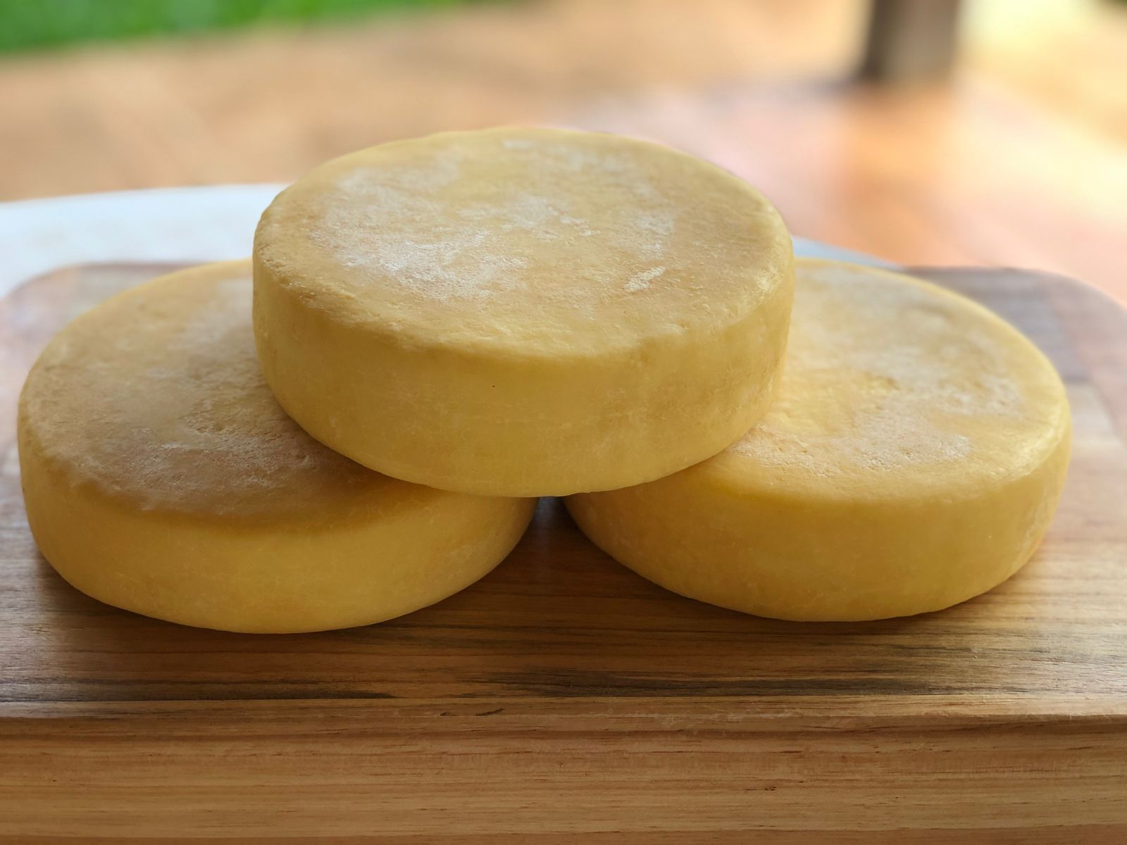 3 peças de queijo canastra com, no mínimo, 14 dias de maturação. Possui uma textura macia e um sabor mais suave, perfeito para acompanhar um cafezinho coado na hora ou para comer uma deliciosa goiabada cascão.